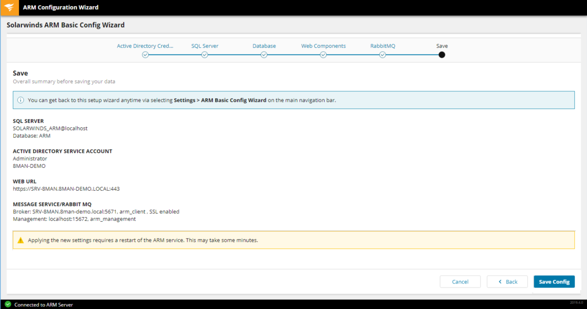 Before you begin using ARM, run the Configuration Wizard to collect the required information for the base configuration.