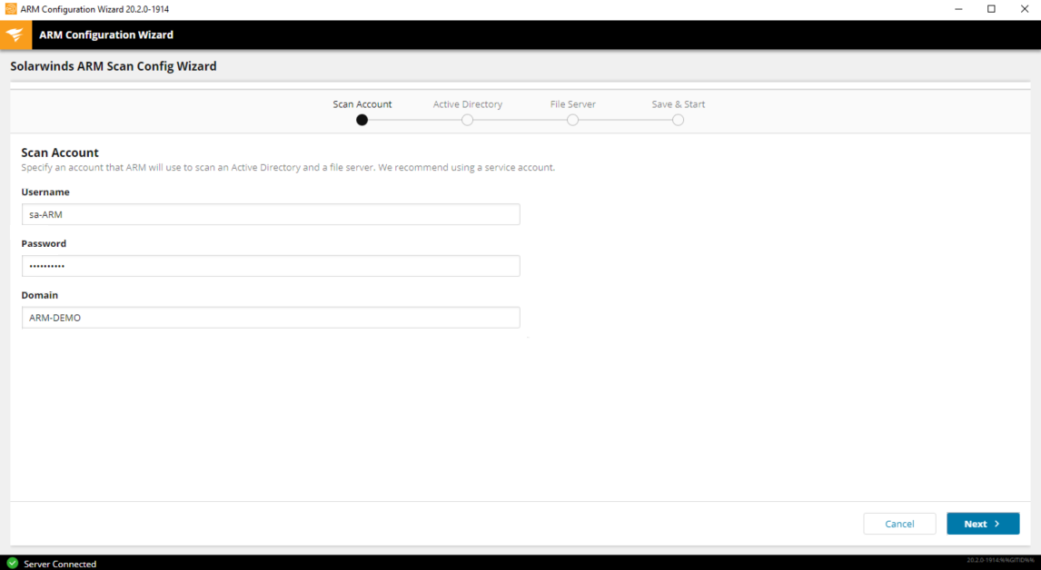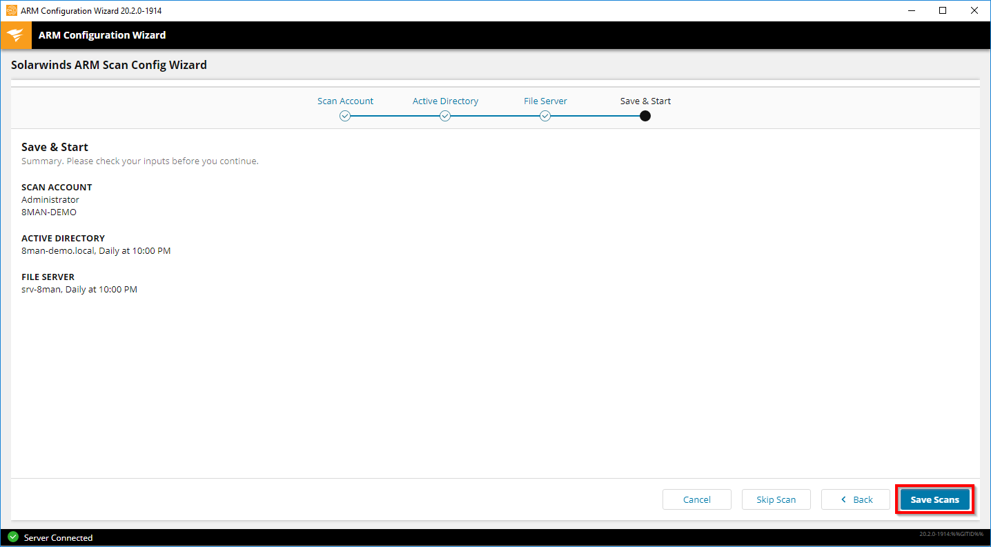 When you are finished, run the Scan Configuration Wizard to collect information for your first Active Directory scan and the first file server scan.