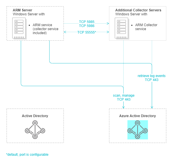 ARM uses web interfaces (APIs) provided by Azure to retrieve the events. An additional collector is optional. The ARM server can be used as a collector. See Configuring the Azure Active Directory (AAD) Logga in the ARM Administrator Guide for instructions to set up the Azure Active Directory (AAD) Logga.