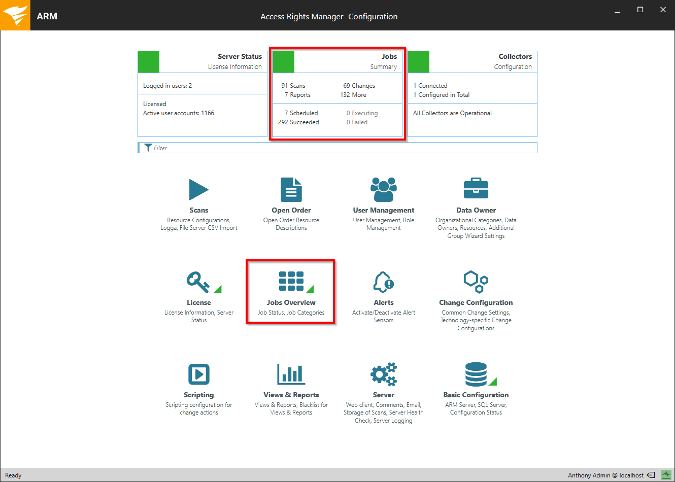 Job Overview includes information about scan speed and the amount of collected data. Successful jobs are displays for two weeks and failed jobs for four weeks.