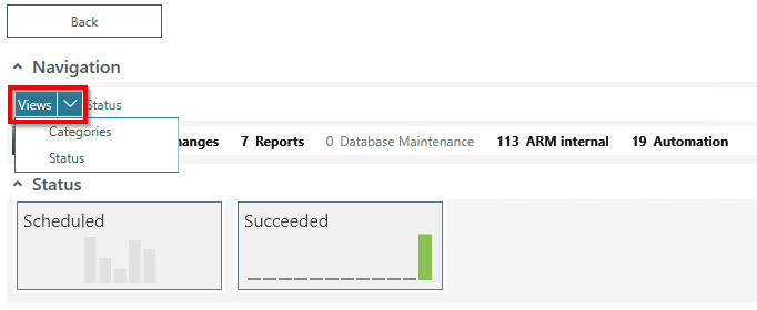 When you click the Views drop-down menu in the Configuration screen toolbar, you can select between two views: Categories and Status.