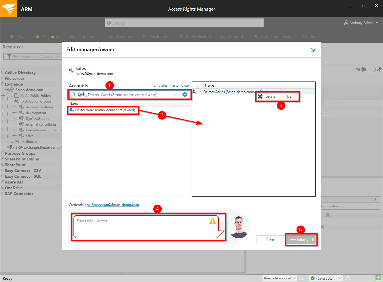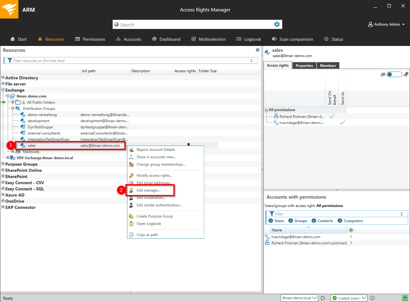 ARM allows you to quickly change managers for distribution groups. The process is automatically documented. In the default settings, managers are the only ones allowed to change the configuration.