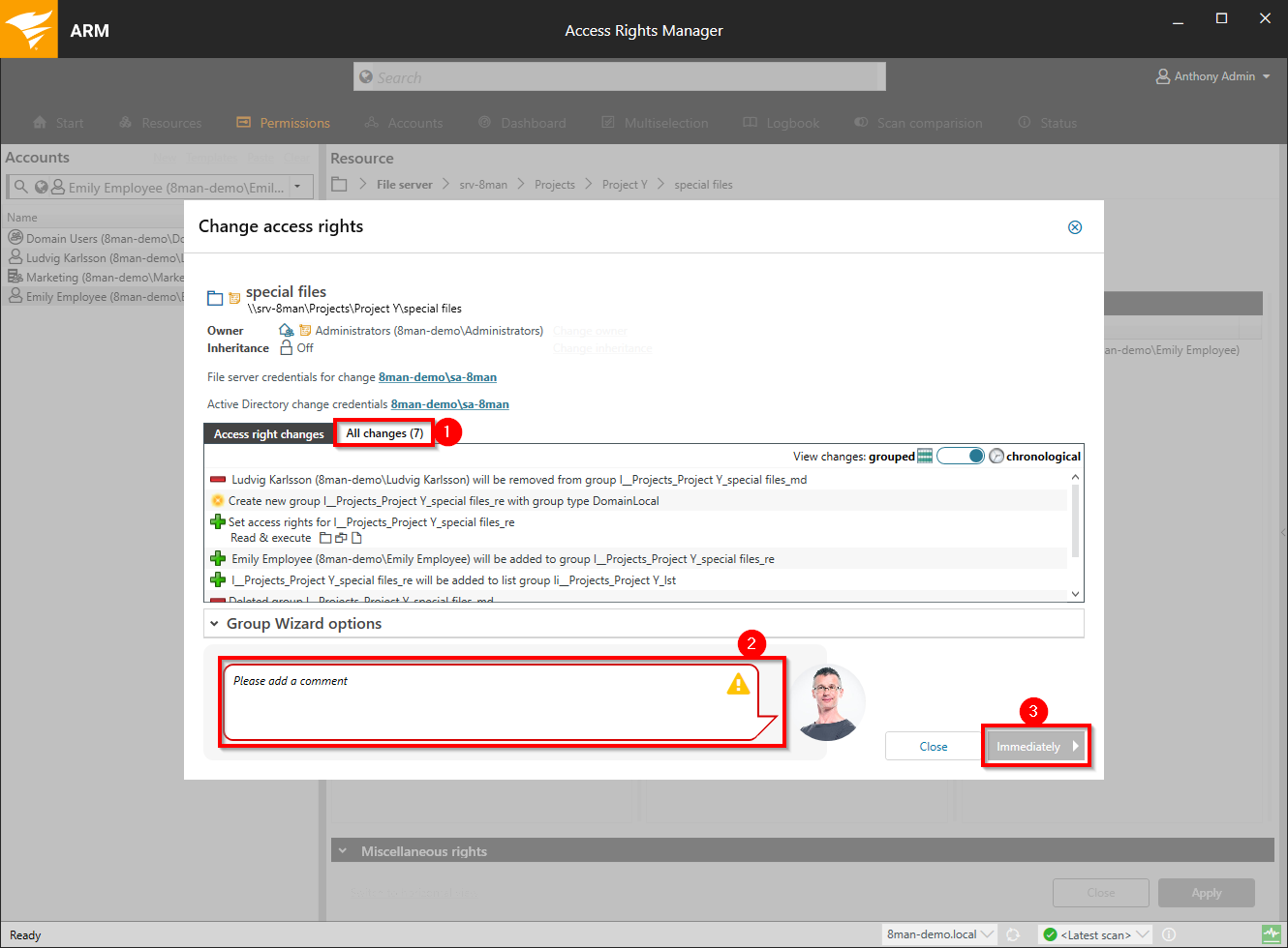 - Click the tab All changes. You see a detailed list of all individual steps that the Group Wizard is performing for you.