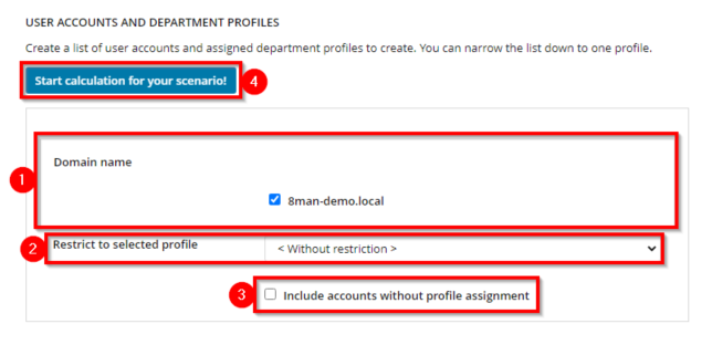 (Optional) Select the Include accounts without profile assignment checkbox to list users with no assigned department profile.