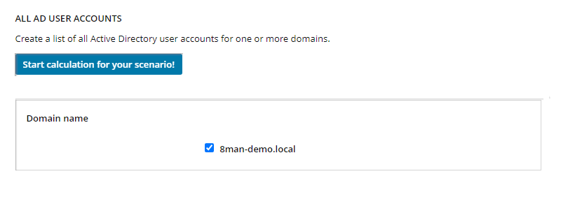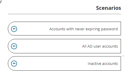 In the Scenarios menu, select a scenario. For example, select All AD user accounts.