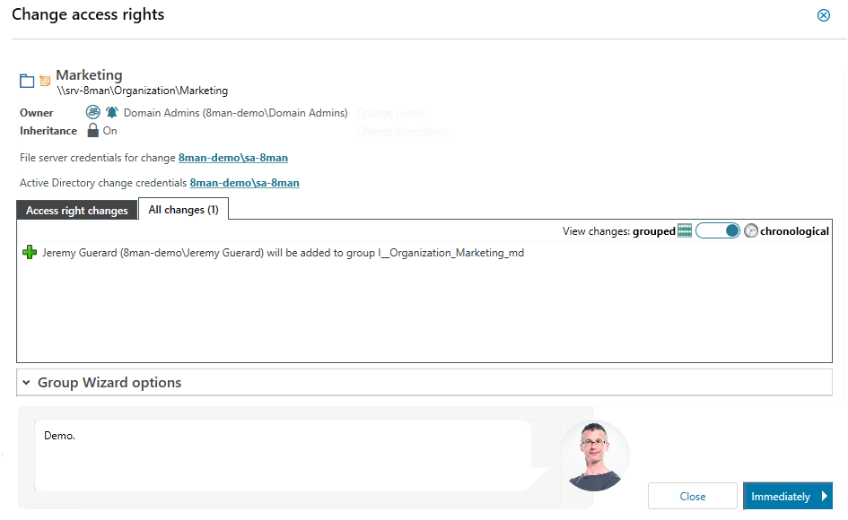 ARM allows administrators to empower or minimize the actions of the data owners and help desk personnel. SolarWinds recommends activating the administrator approval mode to require administrator approval for any changes in ARM that are performed by a data owner. After the approval mode is enabled, an administrator can approve or reject the action requests.