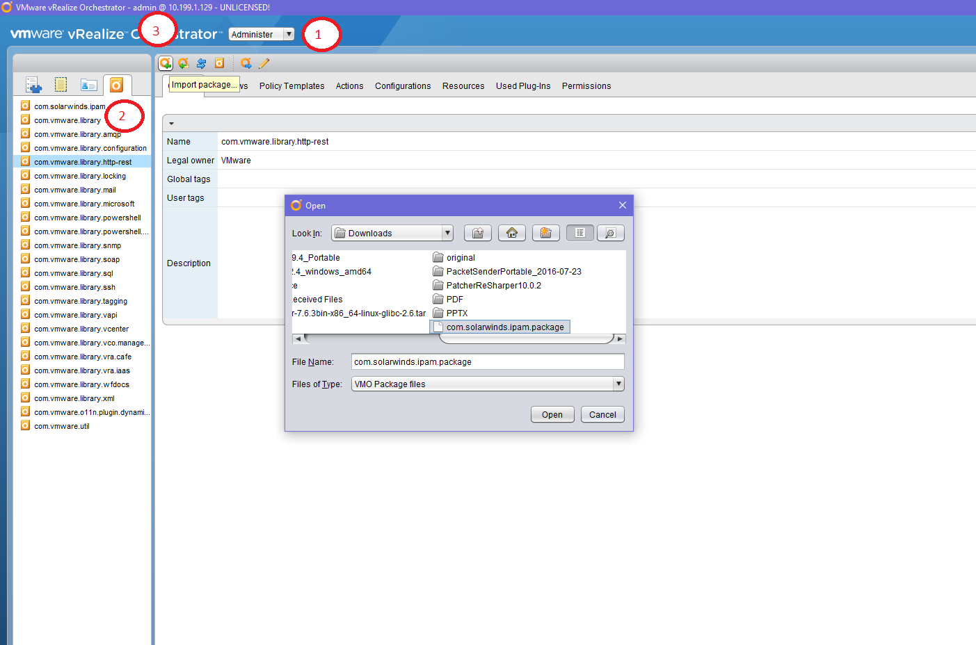 com.solarwinds.ipam.packagefile that you downloaded and click Open.Import the package. Select all of the elements and click Import Selected Elements.