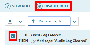 - To disable a rule, select a rule check box, and then click Disable Rule.