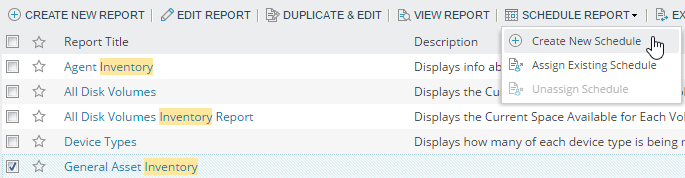 This example shows how to run and schedule the Asset Inventory preconfigured report in SAM.