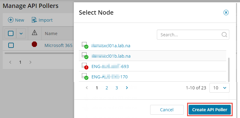 Click the row for the node where you're adding the API poller.