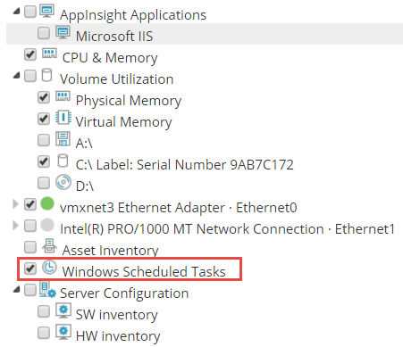 - To enable this feature during automated Discovery, click Define Monitoring Settings on the Monitoring Settings tab of the Discovery wizard and select the Windows Scheduled Task option in the Choose What to Monitor part of the wizard.