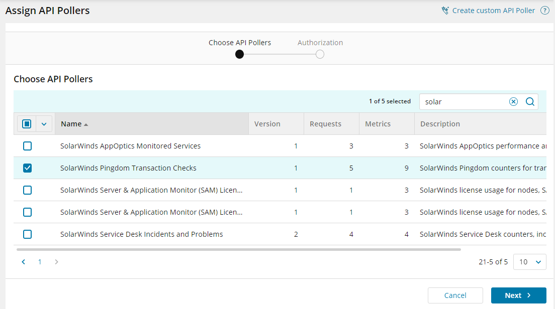 - To exit the wizard and create a standard API poller instead, click Create custom API Poller.