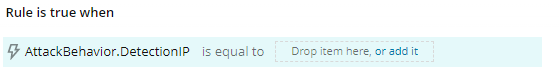 When you drag an entity or entity field into the rule builder, the correct drop location is shown with a blue line.