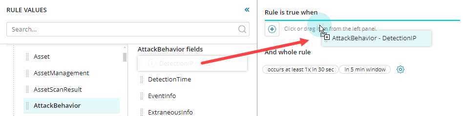- Drag the appropriate entity or entity field into the rule definition builder.
