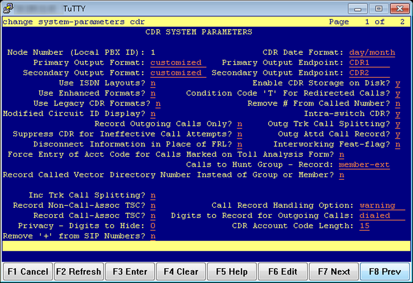 change system-parameters cdr, and press F3. - Set the Primary Output Format to