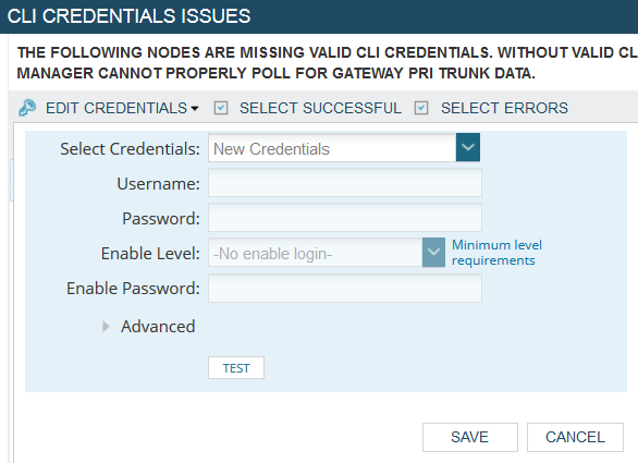 In order to poll SIP-related, SolarWinds VNQM requires CLI credentials with enable mode.