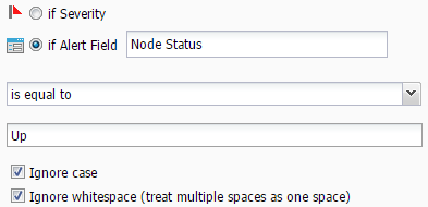 The figures below show an example of a matching rule that accepts the alert if the value of the Node Status field is Up.