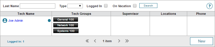 Each tech who logs in to Web Help Desk must have an account. You can use the Techs page to define the techs who will log in to Web Help Desk. For each tech, you can define their work schedule, location, associated tech group, and business zone.