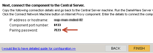In the next task, you go back to the first server and use the pairing password to authenticate the connection between the Dameware Central Server and the Internet Proxy.