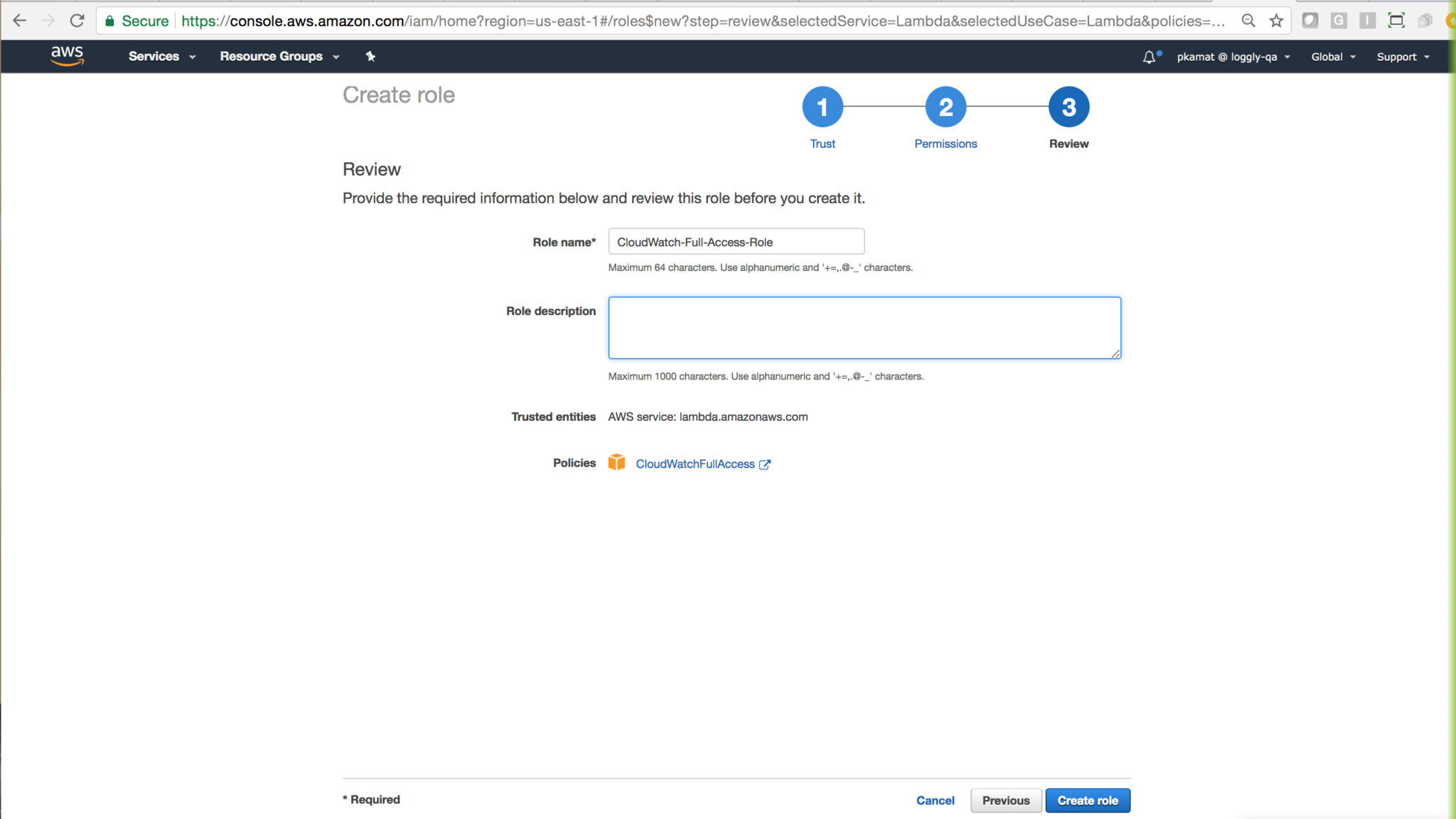 Create a new Role, for example, CloudWatch-Full-Access-Role.