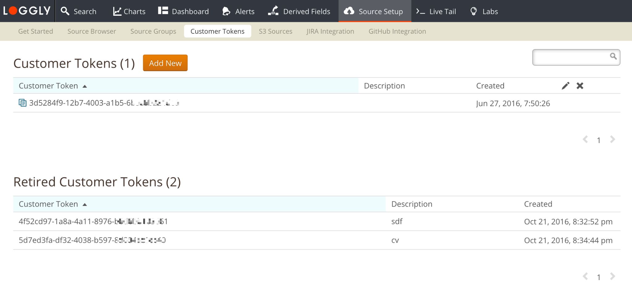 Customer token is a universally unique identifier which differentiate your logs from everyone else’s. Upon account set-up we generate a customer token for you. The customer token is an alpha-numeric string that needs to be included with each log event. You will continue to use that token throughout the term of your account for all of your logs unless you have retired the token and created a new token.