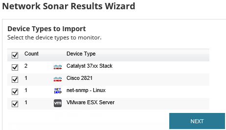Ensure that only the device types you want to monitor are selected, and click Next.