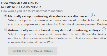 Continue configuring your discovery. When the discovery runs, your monitoring settings will be applied to any discovered devices. Anything that matches the settings be imported and monitored automatically.