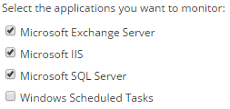 Choose the applications you want to monitor. Only the most commonly monitored applications are available in this screen. You can monitor other applications by using applications templates. This option is available for SAM.