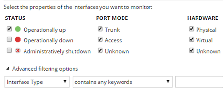 - Use Advanced Filtering Options for existing interface descriptions to choose your most interesting ports, such as 'uplink', 'WAN', etc.