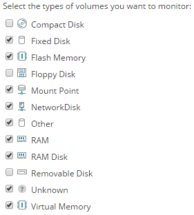 - We do not recommend monitoring CDs, removable disks, or floppy disks (CDs always show '100% full,' and removable disks disappear and display as unknown).