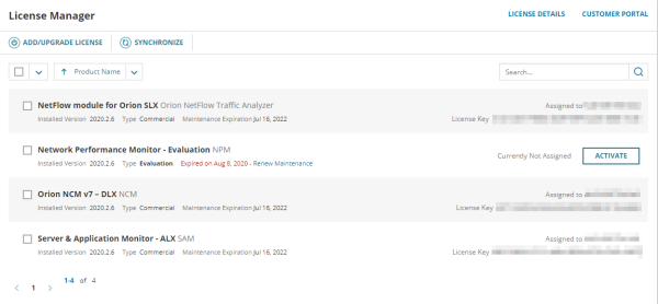 The web-based License Manager replaces the stand-alone License Manager in SolarWinds Platform products.
