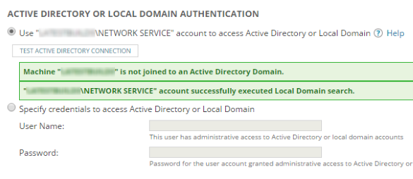 If a system account is available, you can use it. Select Use [Account Name] account to access Active Directory or Local Domain, and click Test Active Directory.