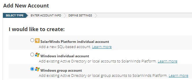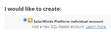 Select SolarWinds Platform individual account, and click Next.