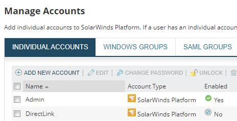 Create SolarWinds Platform individual accounts