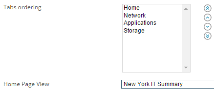 - Select an item and use the arrows to change the order of menu bars. Select an item from the list to specify the default Home page view.