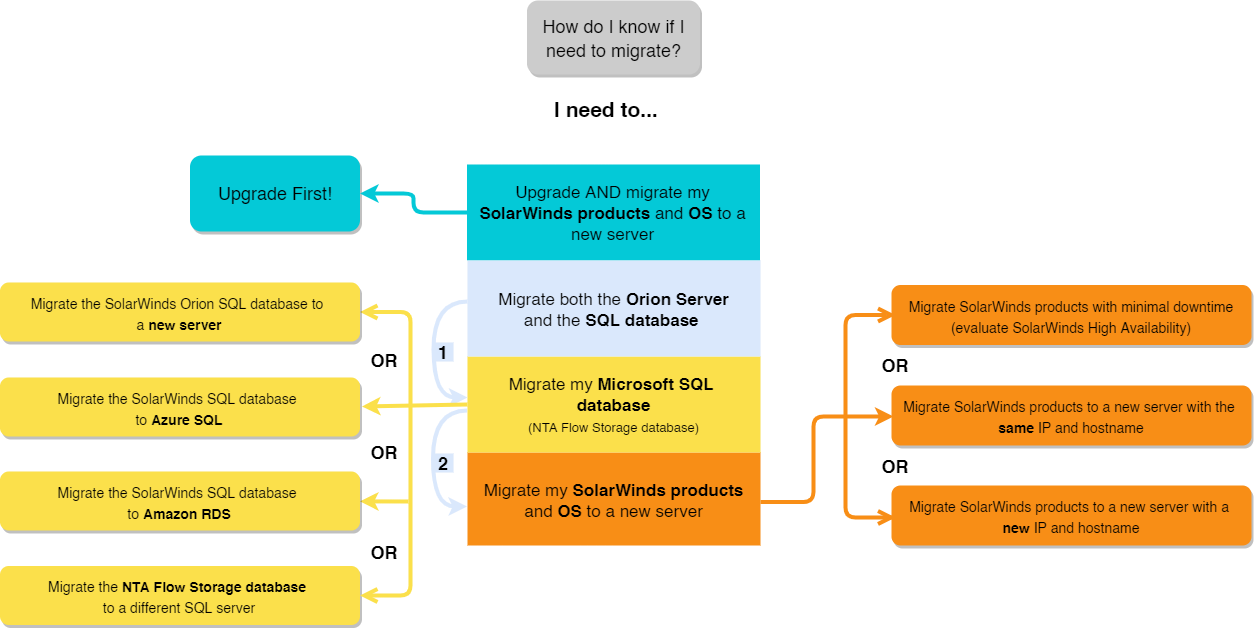 Welcome to the SolarWinds Platform Migration Guide. Review the following sections to find out whether you need to migrate your SolarWinds Platform products and databases and follow the links to instructions specific for your situation.