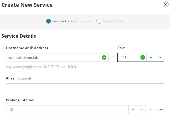 Assign a probe from each office location to the service created in the previous task. Complete the following steps for each office location.