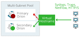 After a failover to the secondary server is complete, the secondary server becomes the active server and continues to act as the active server until another failover event occurs. The secondary server assumes all of the responsibilities of the primary server, including receiving syslogs, SNMP traps, and NetFlow information through the VIP or virtual hostname. You can manually failover to your primary server to return it to active service.