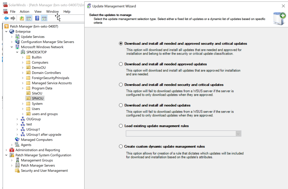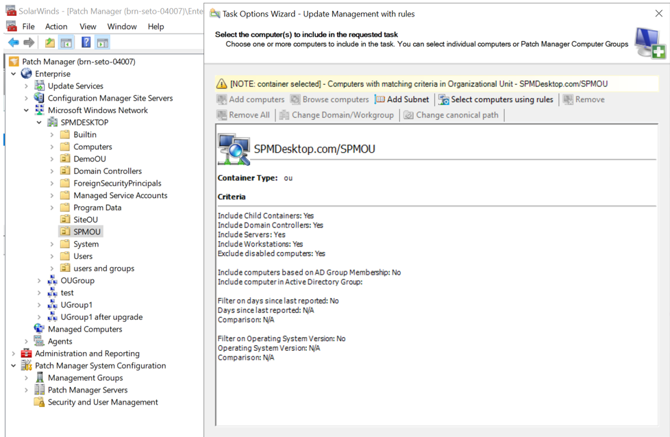 When you perform update management or other tasks on a computer using the OU rule, select your target scope using the OU of the domain in Patch Manager.