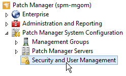 In the Patch Manager menu, maximize Patch Manager System Configuration and select Security and User Management.
