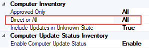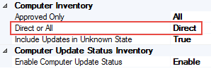 In the WSUS Inventory Options window, select Direct and then click Save.