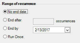 Verify that the Scheduled Time, Recurrence pattern, and Range of recurrence settings are correct for the report (as described in the previous section).