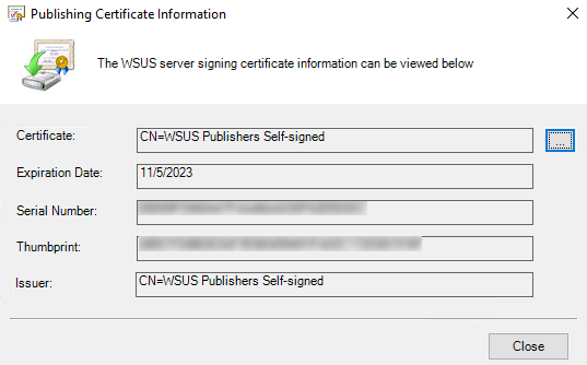 - Import the WSUS publishing certificate to the Trusted Root Certification Authorities and Trusted Publishers stores.