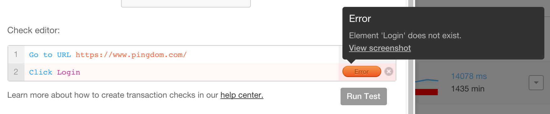 In most cases the transaction check works wonderfully with websites and gives you suggestions while you type for what selectors (identifiers for elements on the webpage) to use when setting it up. However, in some cases there might be no unique selectors on a webpage, or very similar ones used across the board, and that can make it hard for the transaction editor to identify and suggest which ones to use.