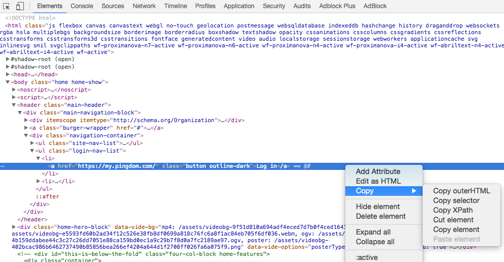 - Click "Copy", and then "Copy Selector"