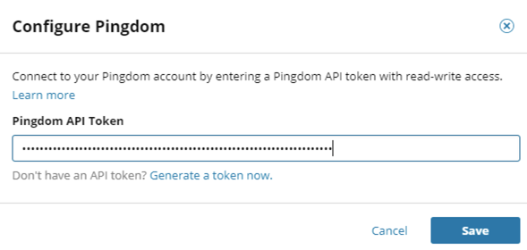 - In your Pingdom account, create a Read-Write access token under Integrations > The Pingdom API https://my.pingdom.com/app/api-tokens