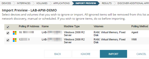 If discovering your network for the first time, SolarWinds recommends monitoring a small number of critical servers.