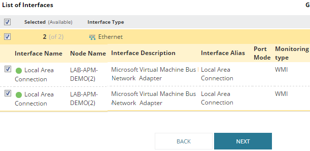 2. Ensure the interfaces you want to monitor are selected, and click Next.