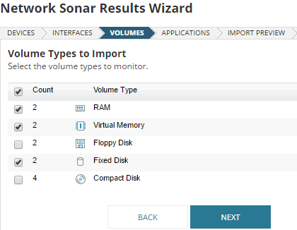 - Ensure the volume types you want to monitor are selected, and click Next.