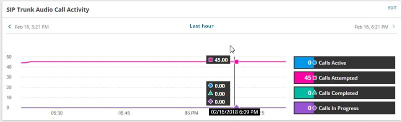 The Performance Analysis charts (PerfStack™) in the SolarWinds Platform Web Console provide resources for Cisco SIP Trunk monitoring.